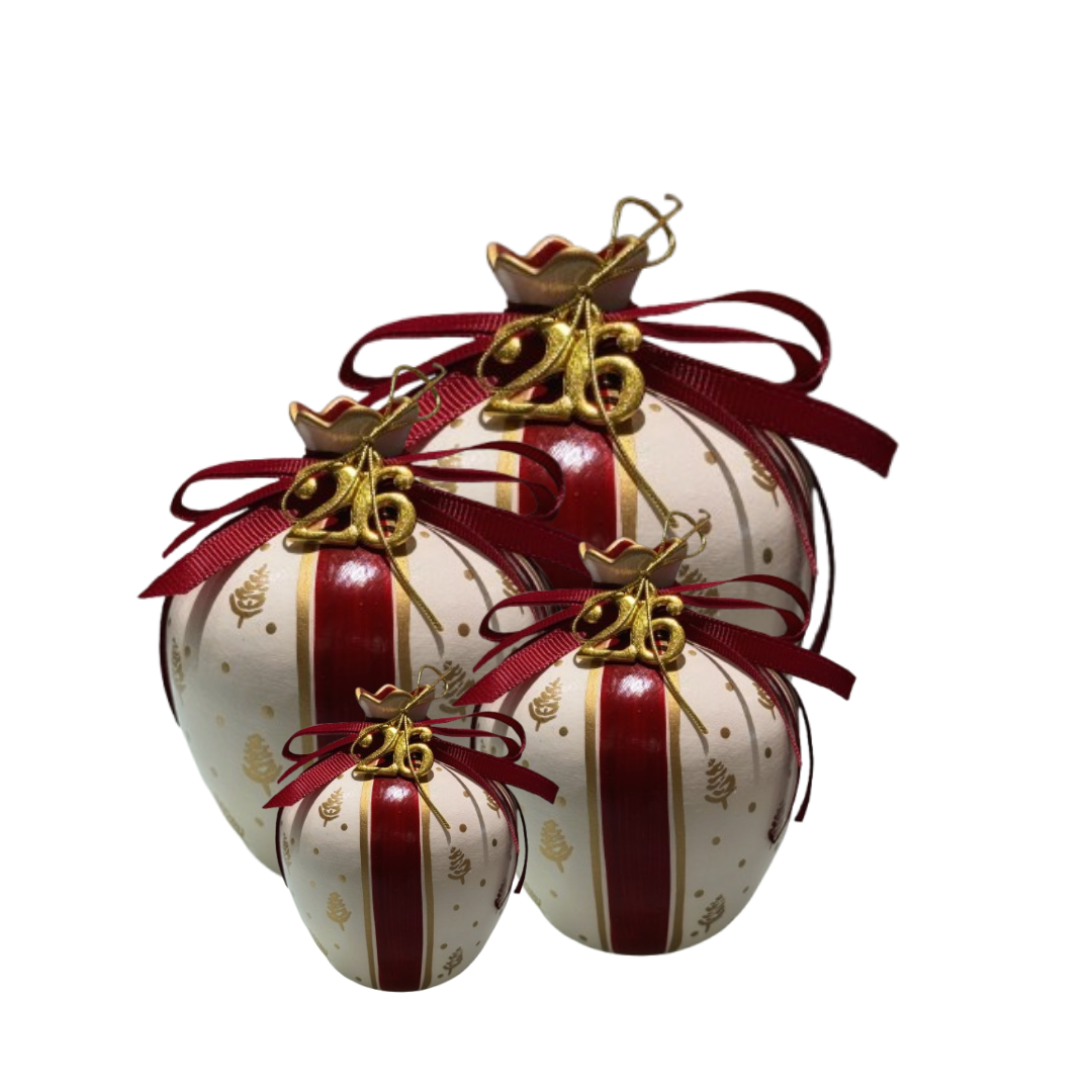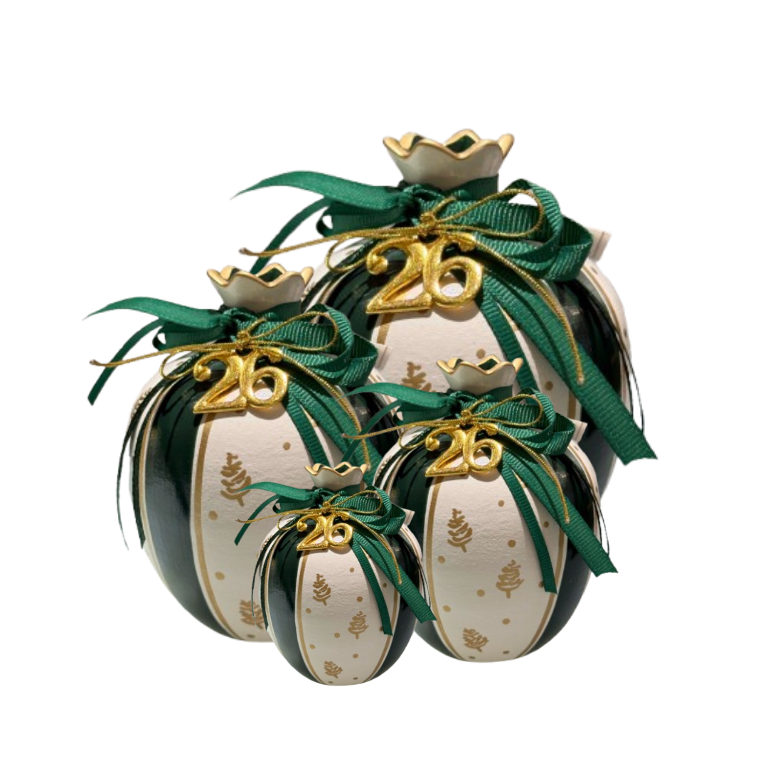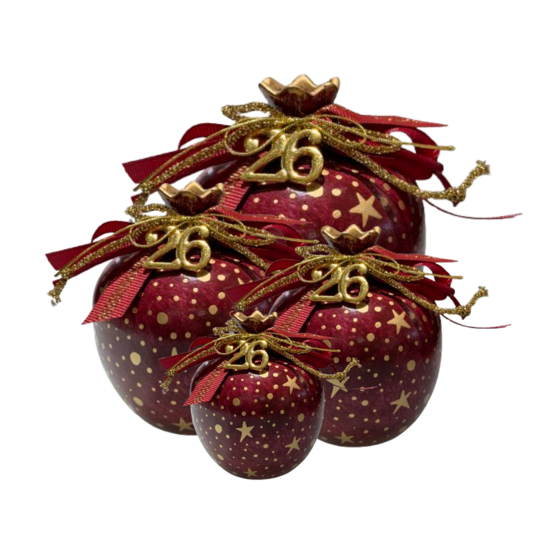 Χειροποίητα κεραμικά γούρια για το 2026 σε σχήμα ρόδι, ιδανικά για επιτραπέζια διακόσμηση. Θα τα βρείτε σε διάφορους χρωματισμούς.